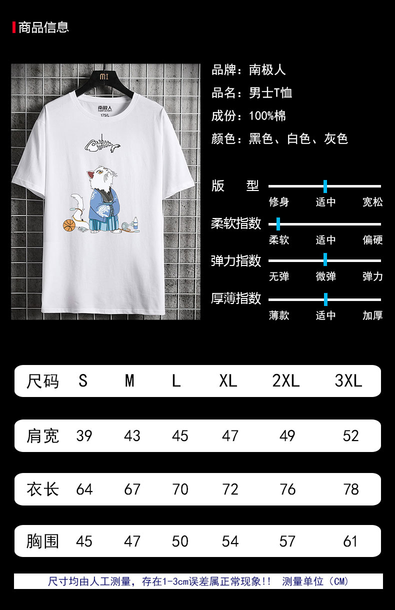 1. 南極人2021新款印花短袖t恤男韓版純棉打底衫潮流夏季男裝上衣服